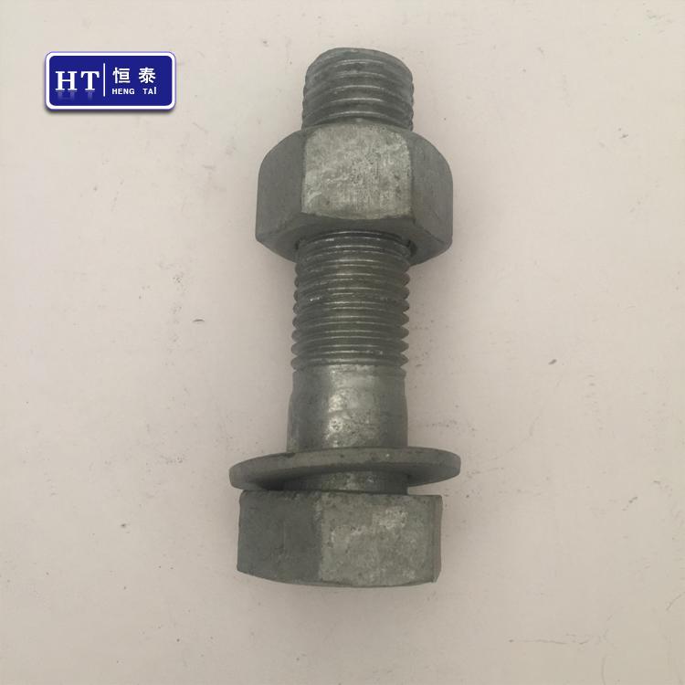 产品用途:热镀锌螺栓的镀层较厚,一般为30-60微米,镀层防腐能力较高。适合于户外工作的钢铁制件,如高速公路围栏、电力铁塔、大尺寸紧固件等较为“粗糙”的工件的长期防锈。较早的铁质自来水管也是热镀锌的。另外,热镀锌螺栓因着高强度和耐腐蚀性,越来越多成为电力铁塔、信号塔、公路护栏首选螺栓