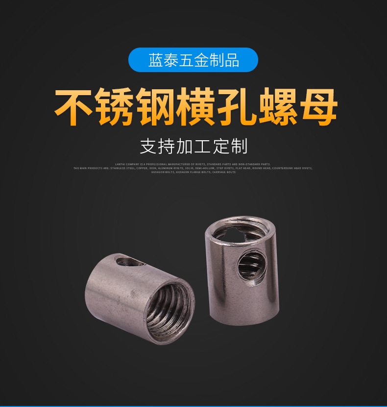 不锈钢非标螺母 304横孔螺母 304圆螺母 家具螺母 不锈钢套管
