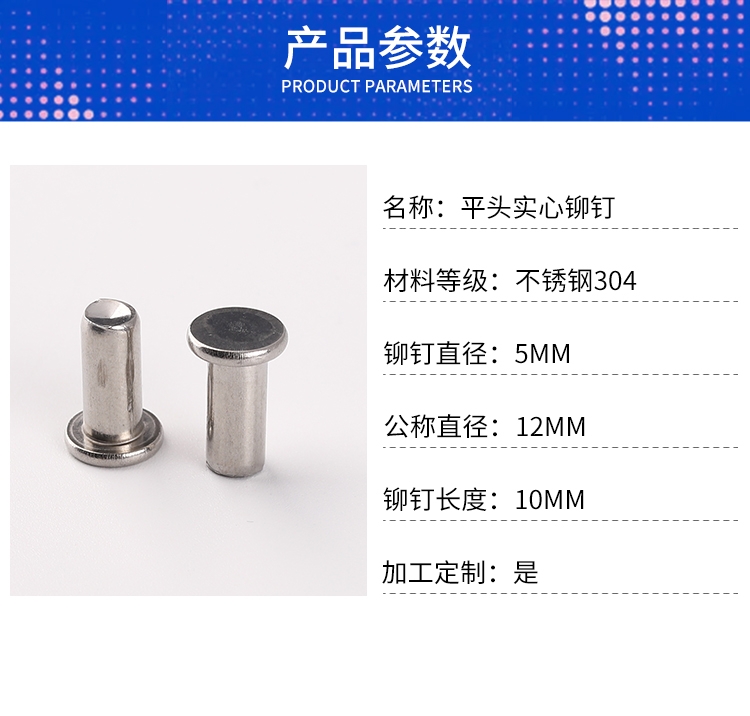 抛光处理 不锈钢实心铆钉 适用风电紧固件 平头不锈钢实心铆钉