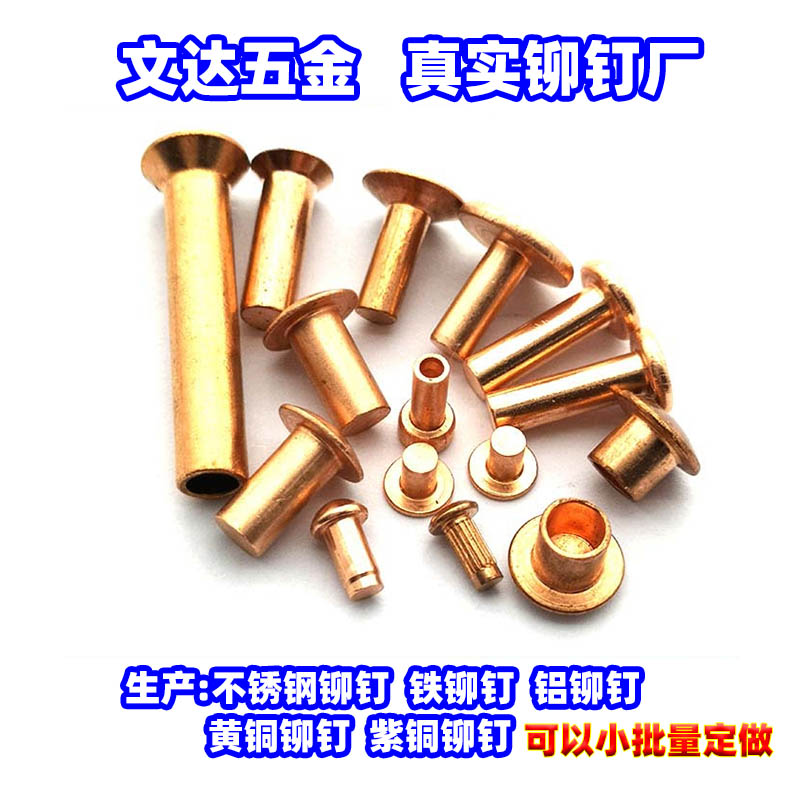 文达五金沉头半空心紫铜铆钉厂家T2刷车片铆钉