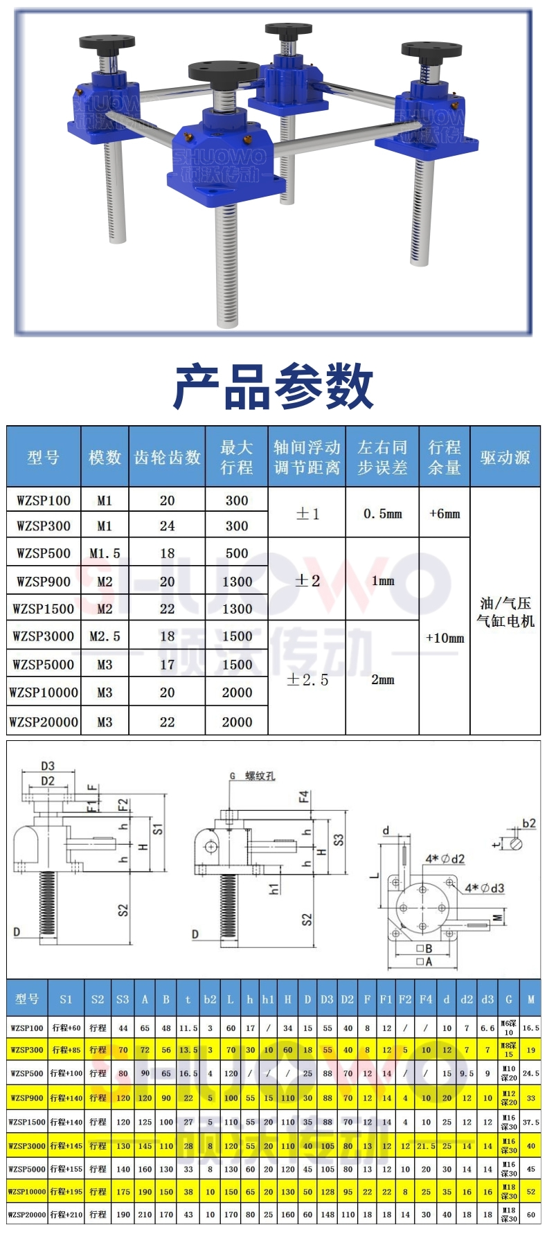 使用寿命长发货速度快沃重减速机规格多样齿轮齿条同步升降器