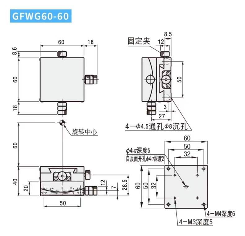 精密角度位移平台 倾斜手动微调滑台GFG40 60