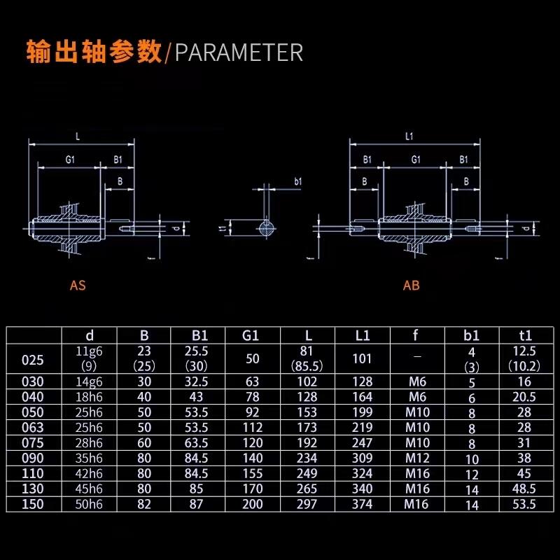 蜗轮蜗杆减速机配件单出轴AS 双出轴AB