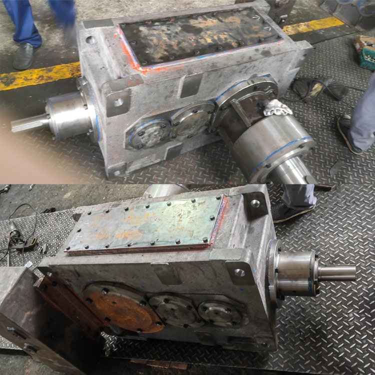 B3SH10硬齿面减速机为垂直轴结构齿轮箱,三级传动,高速级为锥齿,伞齿,螺旋齿,后两级为渐开线圆柱斜齿轮。