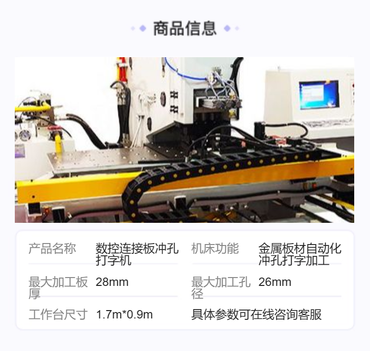 机床功能 | 金属板材自动冲孔、打字加工 | ||