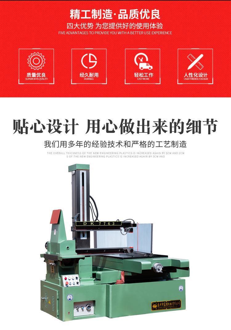 自由正离子和电子在场中积累,很快形成一个被电离的导电通道。在这个阶段,两板间形成电流。导致粒子间发生无数次碰撞,形成一个等离子区,并很快升高到8000到12000度的高温,在两导体表面瞬间熔化一些材料,同时,由于电极和电介液的汽化,形成一个气泡,并且它的压力规则上升直到非常高。然后电流中断,温度突然降低,引起气泡内向爆炸,产生的动力把溶化的物质抛出弹坑,然后被腐蚀的材料在电介液中重新凝结成小的球体,并被电介液排走。然后通过NC控制的监测和管控,伺服机构执行,使这种放电现象均匀一致。