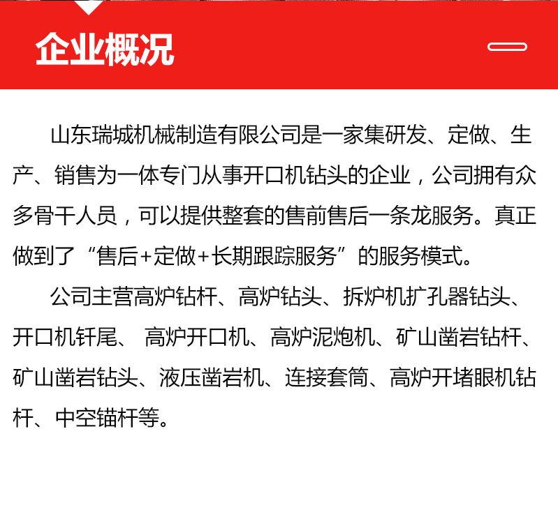 瑞城机械KD2型三齿钻头炼铁高炉专用高凿孔速度反退高效施工