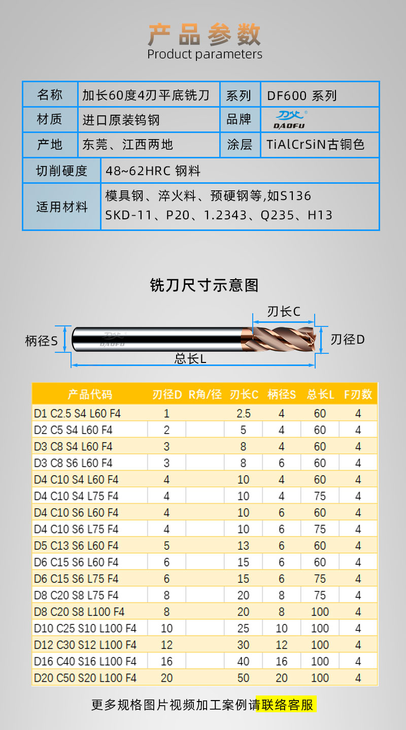 适用范围 | HRC50-62淬火模具钢加工 | ||