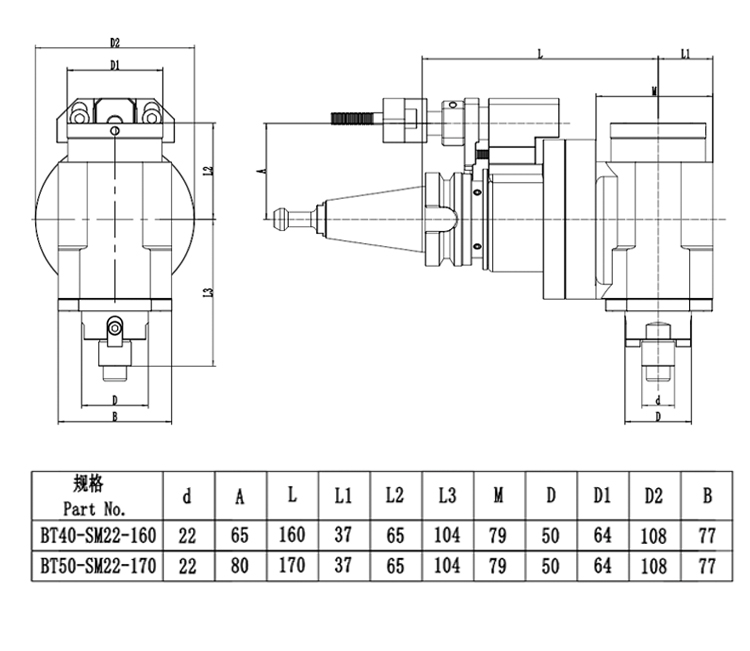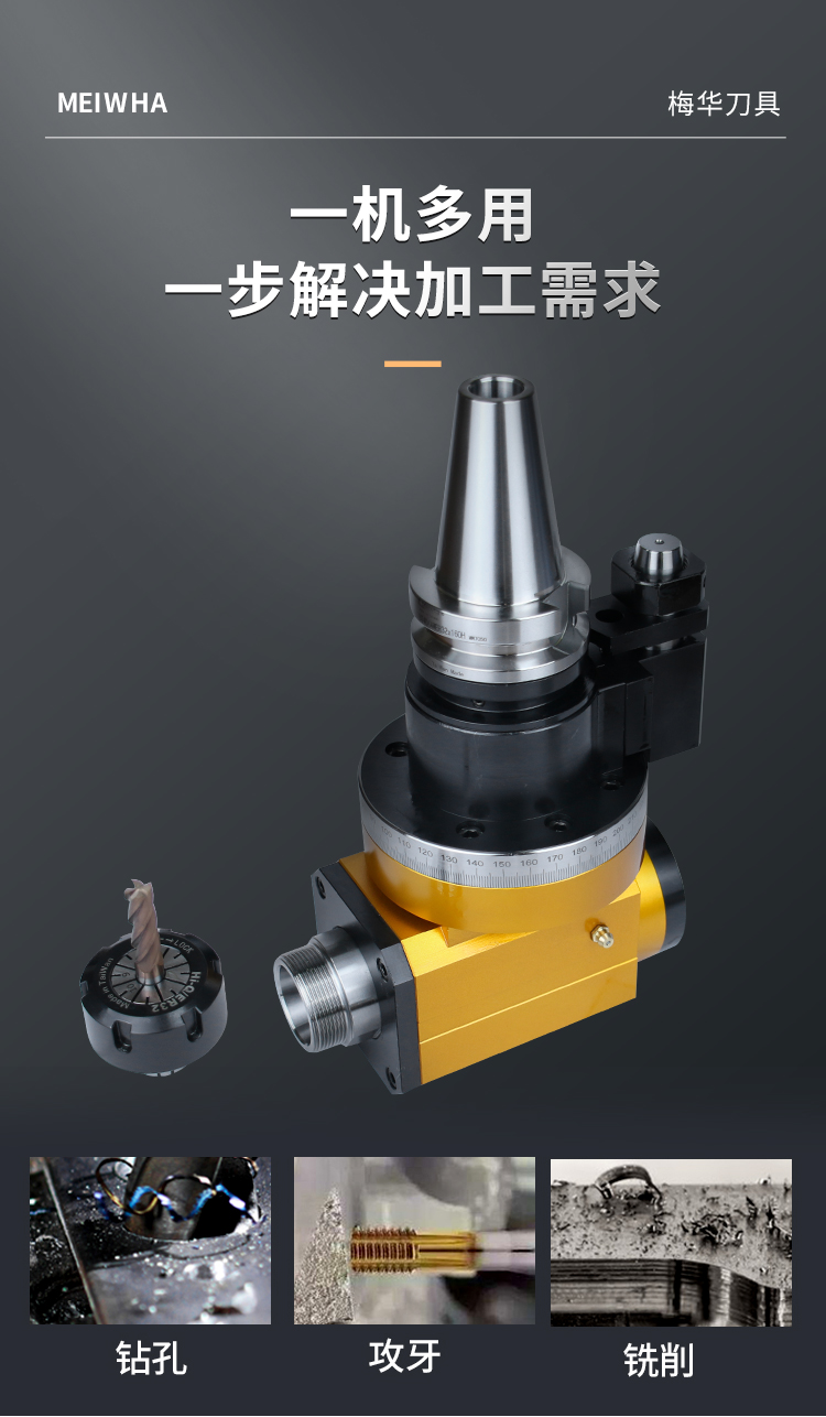 Meiwha/梅华CNC侧铣角度头BT40精密侧铣头90度直角加工中心铣头 是否支持加工定制 | 是 | ||