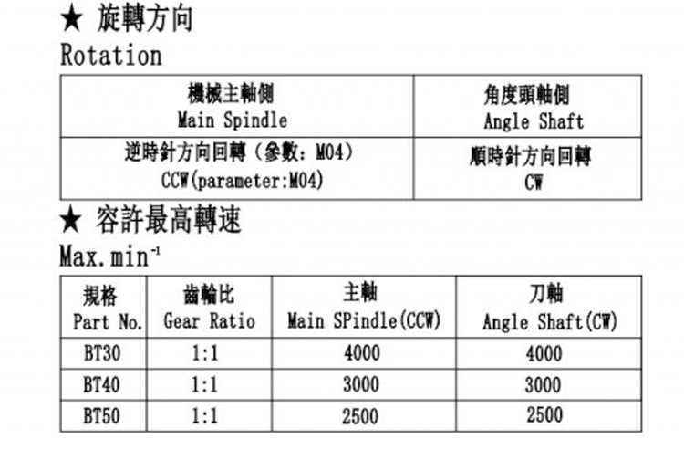 输出转速范围 | 根据机床主轴转速RPM | ||