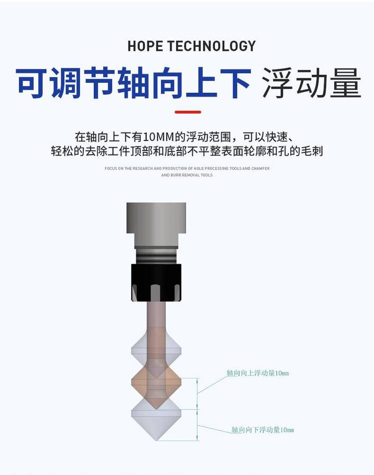 ? 通过刀具内部的浮动机构,使刀具切削刃对工件被加工边缘不断的加压贴着工件,可以达到刀具按照工件形状仿形去毛刺的目的。