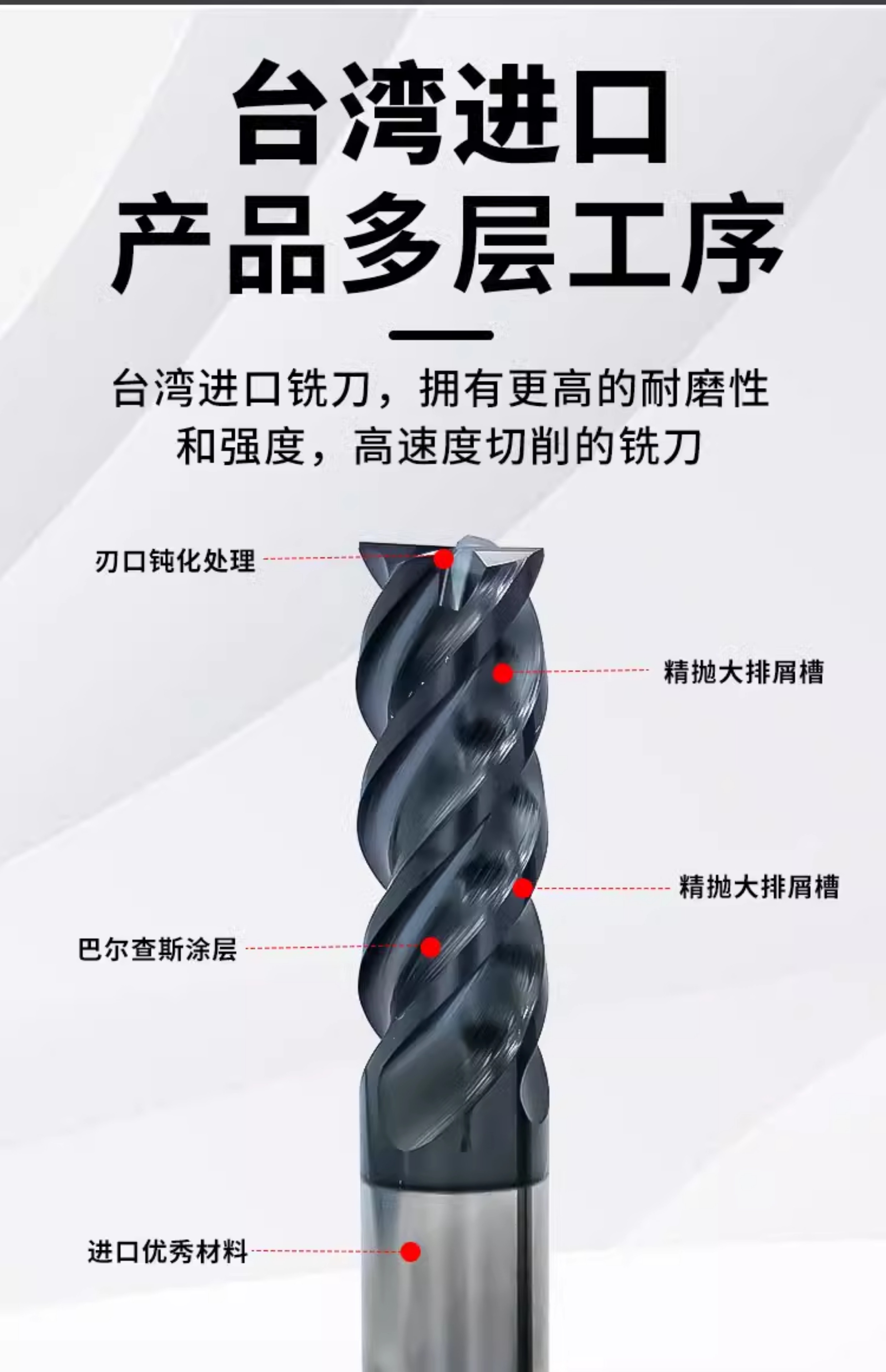 台湾梅华4刃钨钢立铣刀硬质合金不锈钢模具钢钛合金专用平底刀CNC