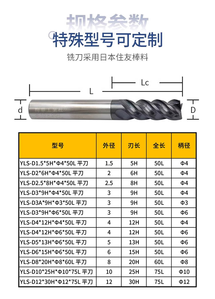 颜色分类型号:梅华-4刃-刃径*刃长*总长