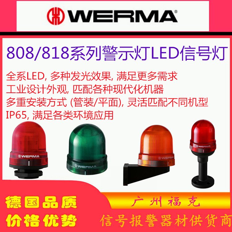 WERMA(伟马快德)是德国专业制造声光信号设备的知名品牌,成立于1950年,产品涵盖信号塔灯、报警器、蜂鸣器等,广泛应用于工业自动化领域。WERMA信号塔灯,WERMA报警器,WERMA警示灯,WERMA信号灯,WERMA声光报警器,WERMA蜂鸣器,WERMA交通信号灯,WERMA语音报警器,WERMA声光信号灯?