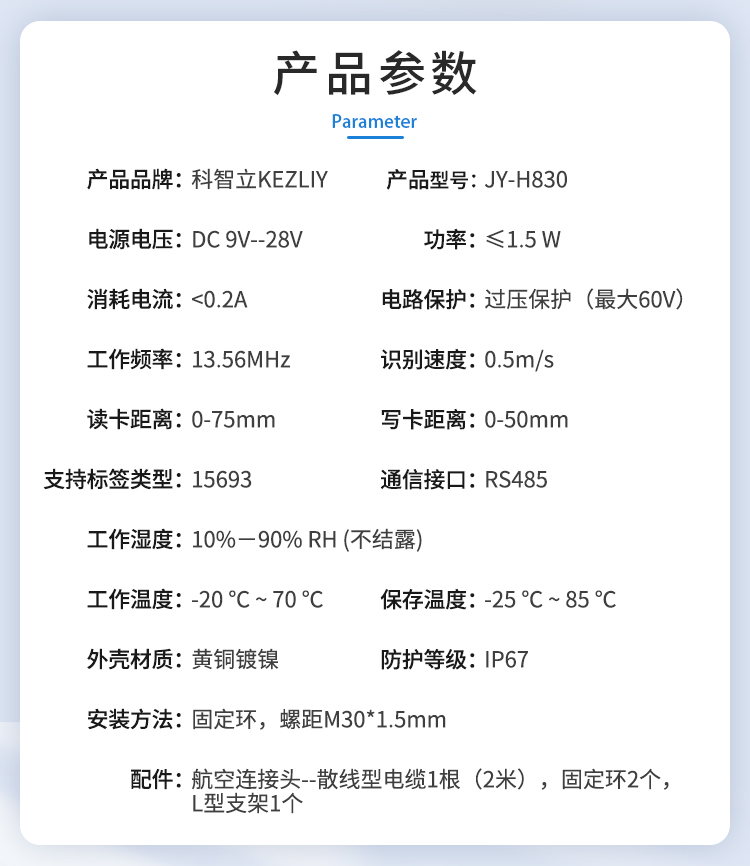 配件 | 航空连接头--散线型电缆1根(2米),固定环2个,L型支架1个 | ||