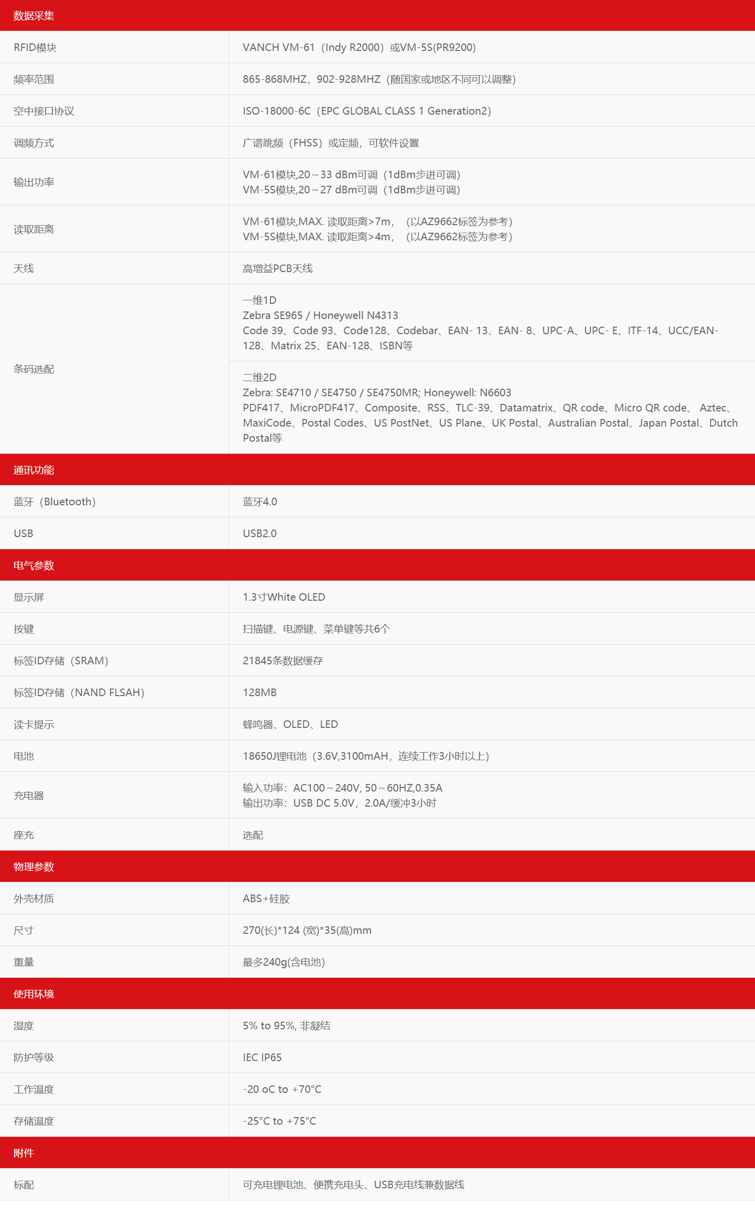 1D/2D条码扫描 UHF无线射频读写 VH-88 超高频蓝牙手持机 型号 | VH-88 | ||