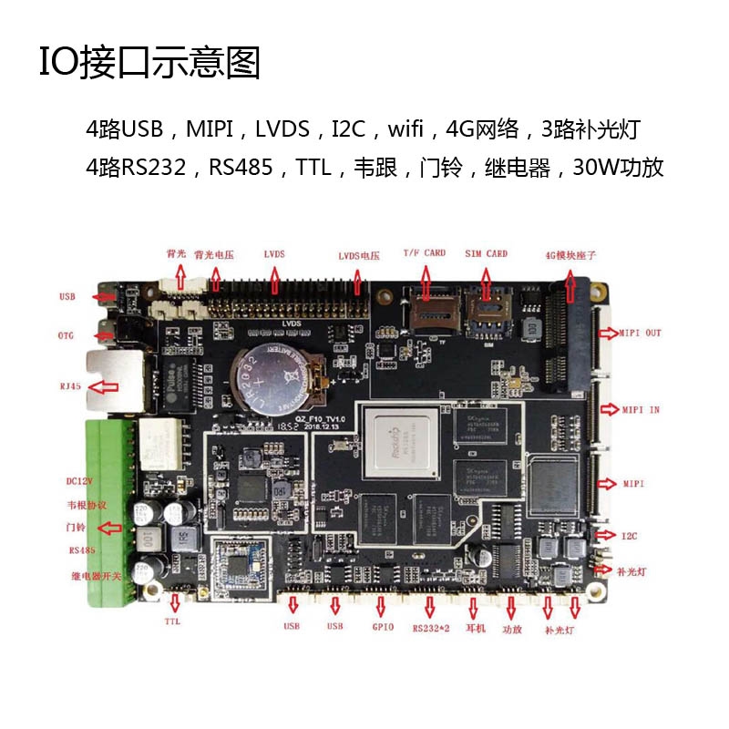 QZ_F10是一款基于RK3288芯片方案开发的人脸识别门禁系统行业应用的安卓主板,该主板集成了门禁人脸识别行业应用的通用总线接口,包括韦跟,门铃,继电器,串口,MIPI接口,LVDS接口等,主板采用超薄设计,方便客户布置机构,支持多种液晶屏和触摸屏,支持双目摄像头,聚芸智能提供产品整套解决方案,包括液晶屏,触摸屏,双目摄像头等,可支持客户进行产品开发,协助客户进行系统层面优化,外设调试,更可提供物联网家居层面的智能硬件,服务器端软件接入等整套解决方案。