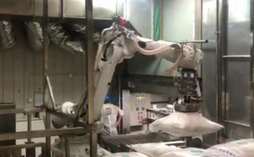 客户希望能够由机器人来搬运沉重的麻袋,并配合流水线下游工序,将麻袋放置于破袋机中。而因为麻袋货品本身存在的边界不清晰、褶皱丰富、姿态随机性强等,传统的自动化方案完全无法满足客户需求。