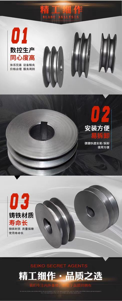 专业铸造皮带轮,全数控机加工,准确度同心度高,可根据顾客图纸制作各类皮带轮,品质有保证。