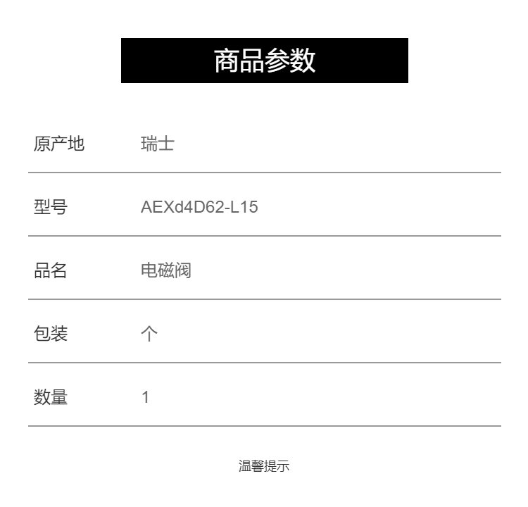 Wandfluh电磁阀AEXd4D62-L15是福建秉德供应链管理服务有限责任公司的优势产品,直接瑞士原装进口,价格优惠,100原装进口,可而提供报关单等随货资料,保证Wandfluh电磁阀AEXd4D62-L15的产品质量