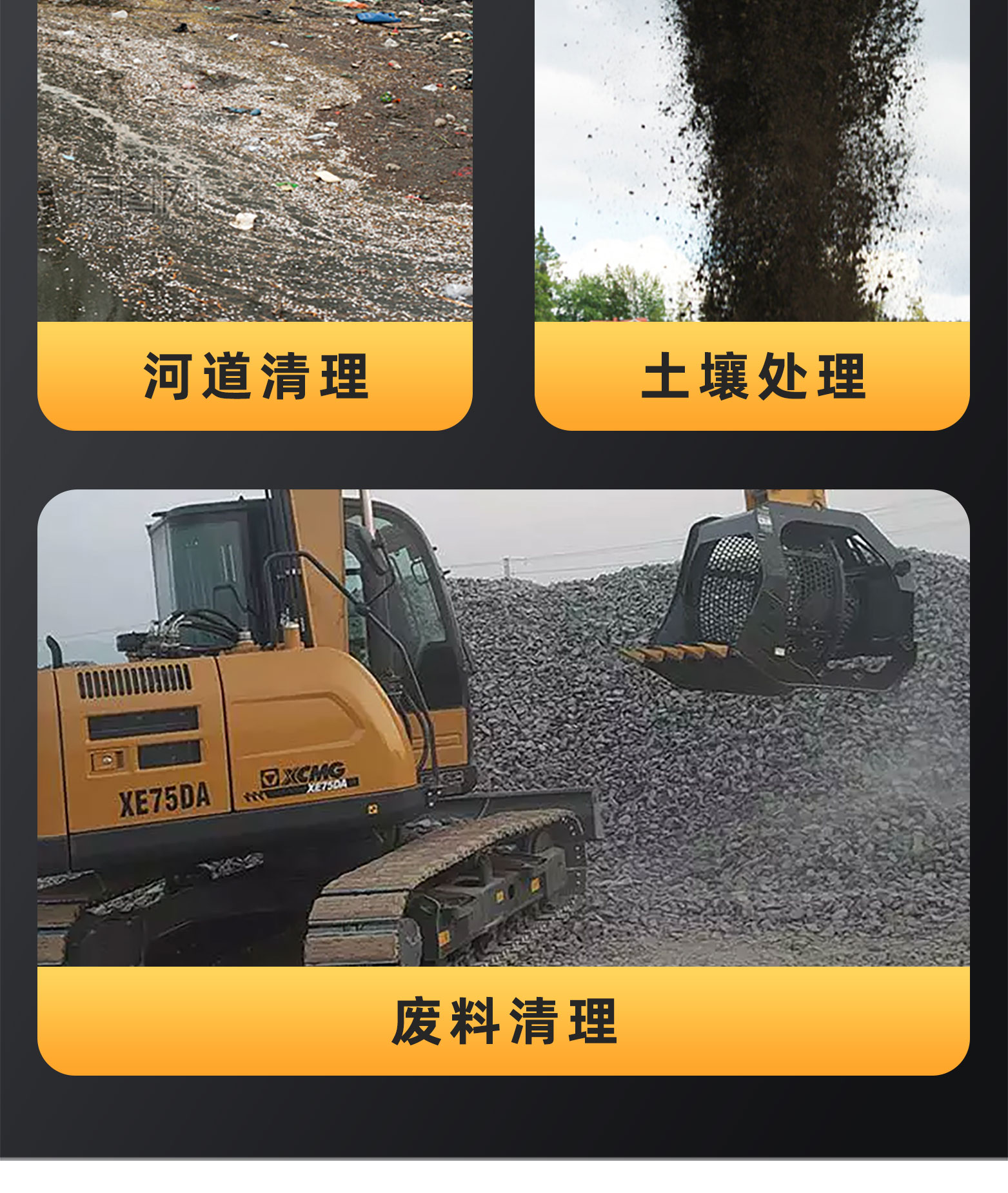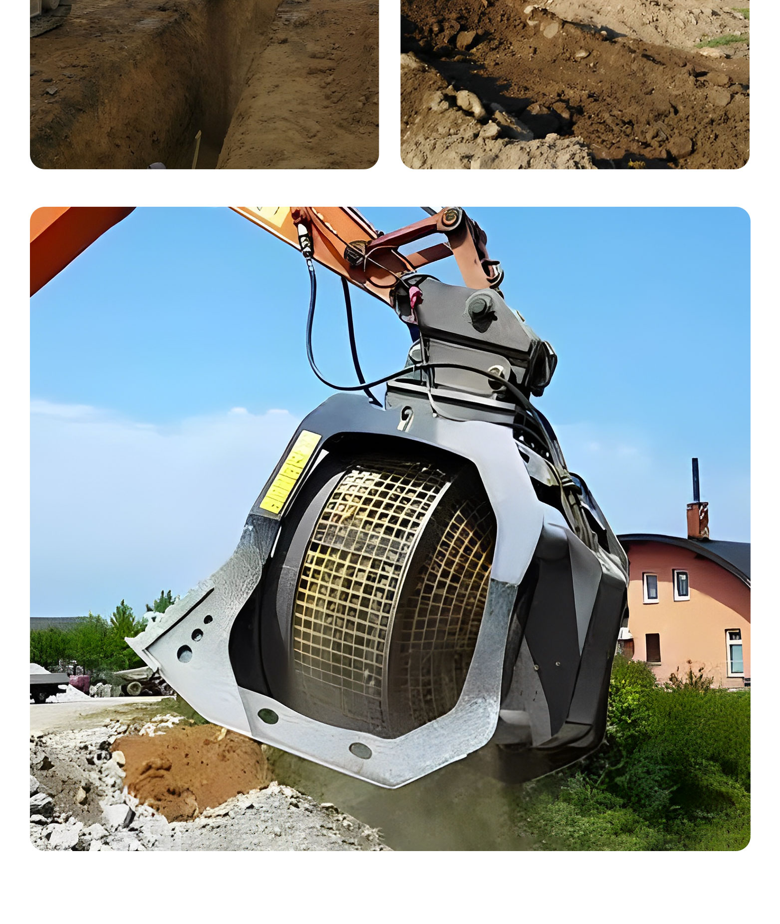 特点 | 液压滚筒式土壤筛分网斗 | ||