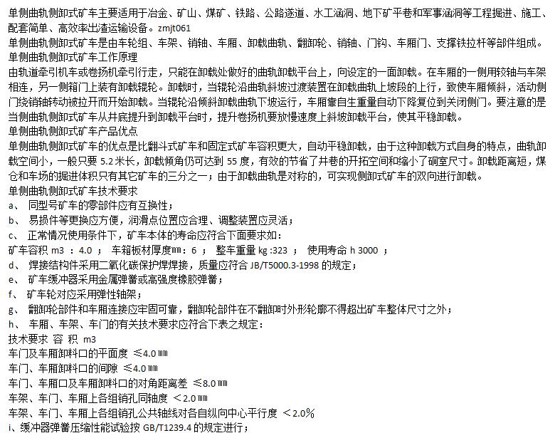单侧曲轨侧卸式矿车容积大自动平稳卸载种类多样