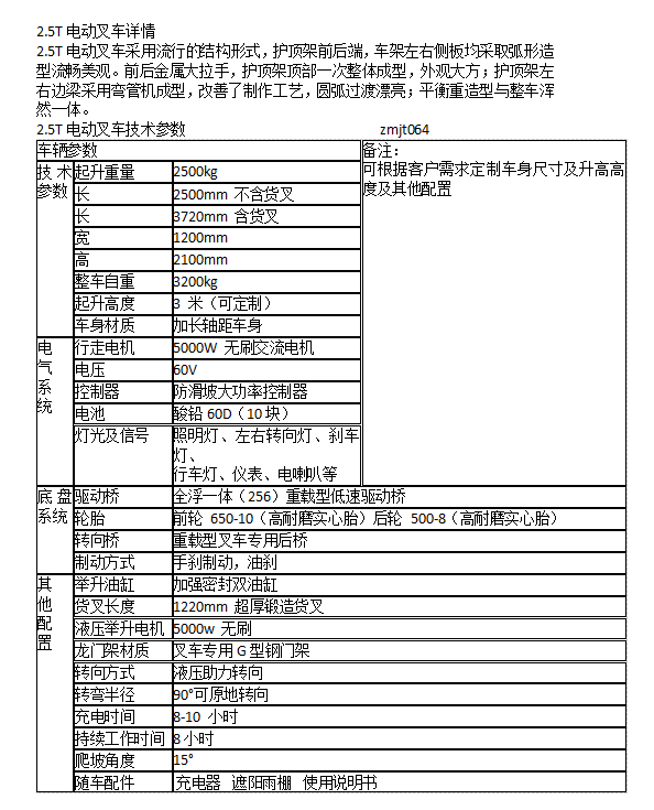 规格 | 电动叉车 | ||