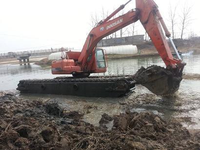 水陆两用挖掘机,是专门为工程船舶及常规工程机械无法进入和施工的沼泽地,海涂,淤塞沟渠等111区域进行开挖,清淤而研制的。是一种可自行出入泥沼,水域及河坡堤岸的超低比压挖掘。 水陆挖机总宽4米2, 不需要拆装,平板车可直接托运,减少运输费用, 方便快捷。 品质好 价