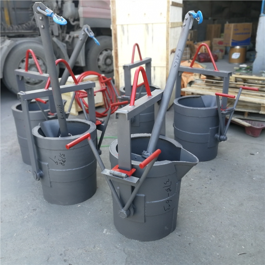 铁水包:采用蜗轮蜗杆传动,转动灵活自如,双向回转,可逆性好。分手动和手电两用,手动操作方便,电机传动安全省力。吊杆采用锻件,比钢板焊接安全可靠;包体钢板较厚,包底采用锥度、底箍、焊筋相结合,既延长了使用寿命,又确保了安全;包体与吊杆和减速箱均装有铰链卡板,可随时锁定;两包轴与吊杆间装有调心轴承,一致性好。(8T以上可选电动)