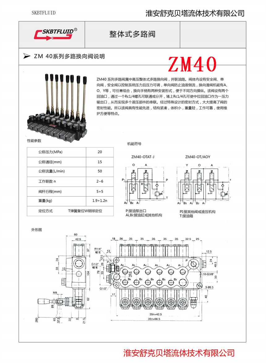 DCV40-3OT-DC24整体式电液控液压多路阀