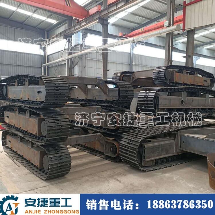 钢制履带相对而言使用的范围及其寿命及对工况的选择则更宽广。它由钢履带、履动轮、导向轮、支重轮、底盘和两台行走减速机组成(行走减速机由马达、齿轮箱、制动器、阀体组成)。一般比如钻机整体布置在底盘上,通过控制手柄调节履带底盘行走速度,可使整机实现方便的移动、转弯、爬坡、行走等。