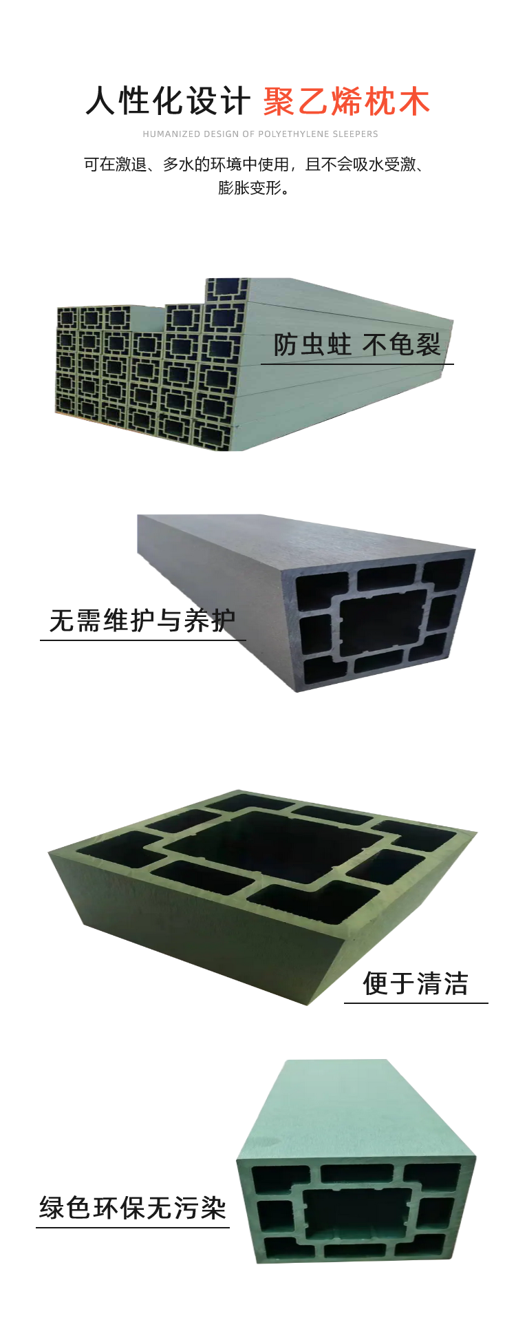 津鸿复合聚乙烯枕木12*12*200cm高强度高承重军绿色回字形枕木块