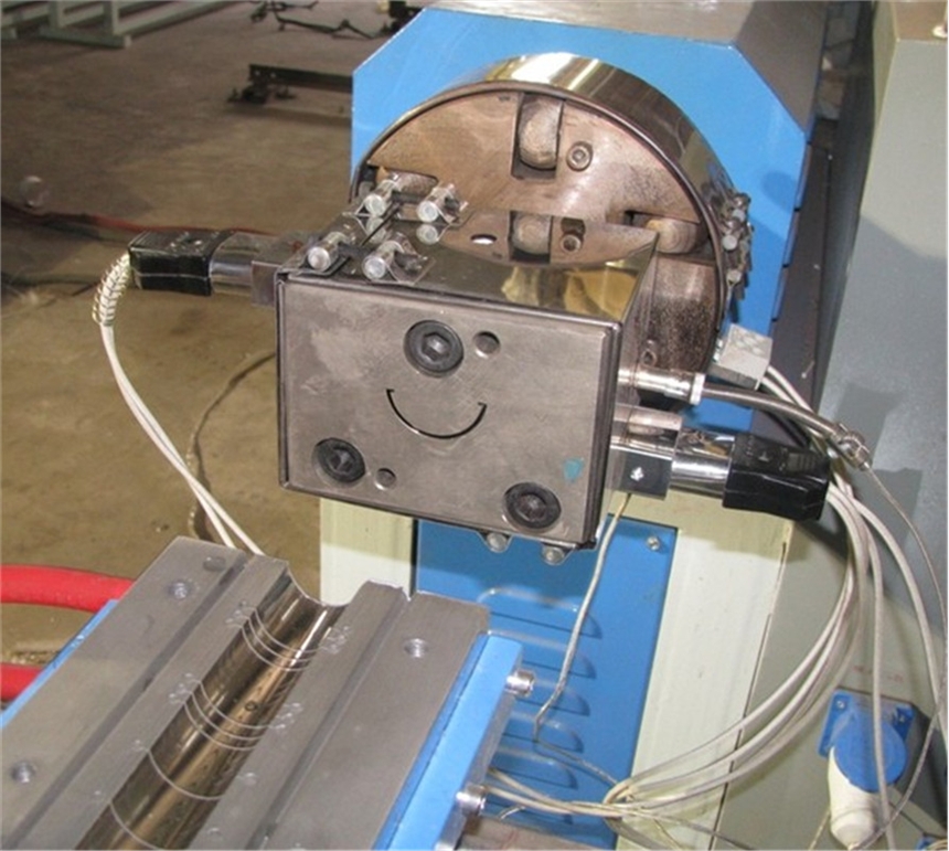 此款PC灯罩生产线主要用于生产T5 T8 和其他异型透明灯管/面罩/外壳,扩散灯罩产品,此类产品对整条生产线的稳定性要求非常高,尤其是主机挤出塑化稳定性,模具的精密程度,对PC/PMMA塑料制品的尺寸和表面光洁度影响非常大。我公司不断完善生产线细节,有效解决了表面拉痕,震纹等问题,这款PC灯罩生产线可稳定生产PC等异型材。生产线具有高塑化,透明度高,高产量,低能耗特点。生产线主要由:精密挤出机、三维移动的定型台、牵引机、切割机、堆放架等部分组成。主机采用高效排气挤出机,变频调速,依据各种规格的产品配置不同规格的主机;定型台采用不锈钢接水盘,真空泵;整机可以三维调整;牵引机为双动力同步驱动皮带式牵引机,切割长度采用定长切割;料架采用气动放料,该机可用于生产PC类,异型材,亚克力,灯管、灯罩等