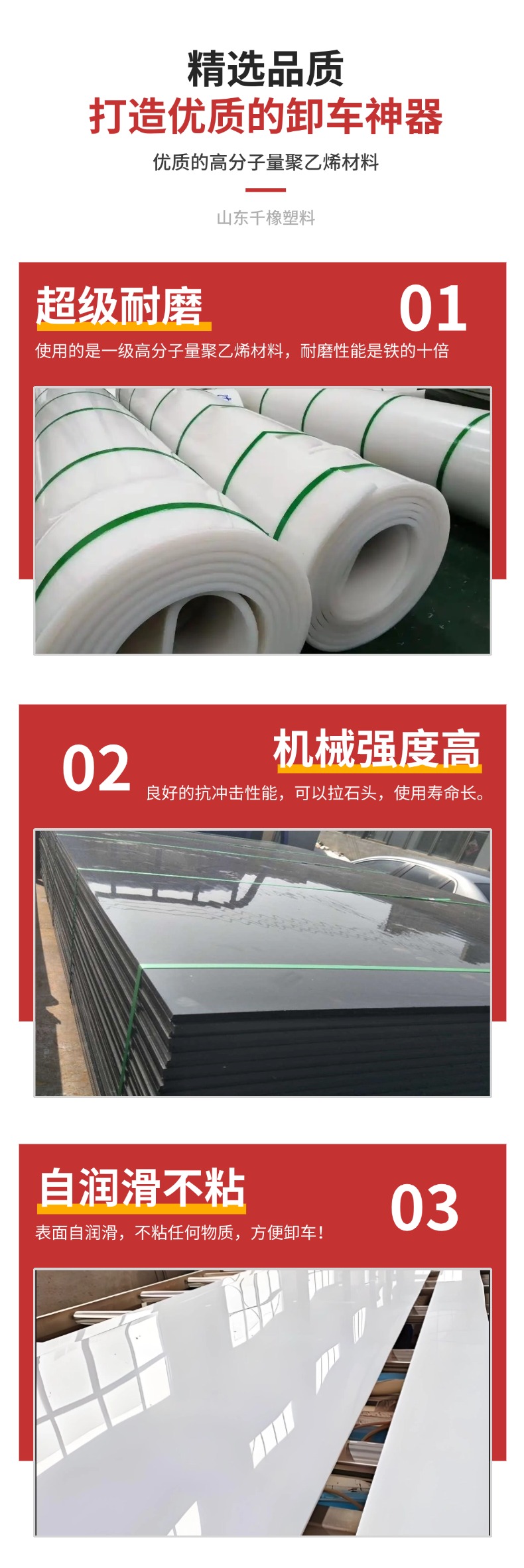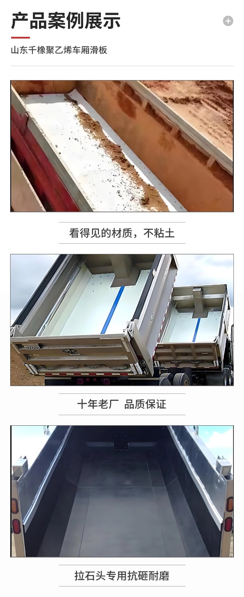 聚乙烯车厢滑板是一种常用于货运车辆(如卡车、拖车、集装箱等)内衬的高分子材料组件,主要用于保护车厢底板、减少摩擦、便于装卸货物,并增强耐磨性和防腐蚀性能。以下是关于聚乙烯车厢滑板的详细介绍: