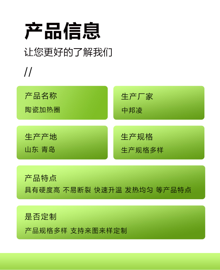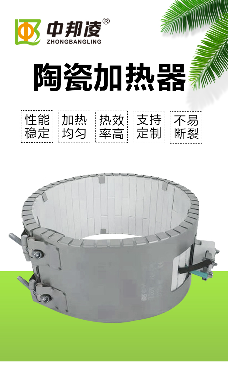 中邦凌陶瓷加热圈是一种挤出机、注塑机等塑料机械常规配套的电加热器,具有安装方便、耐高温、传热快、绝缘性良好、使用寿命长、性价比高等优点。