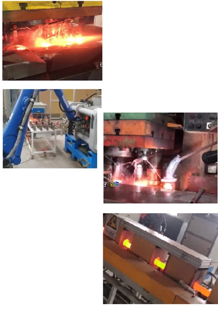 大尺寸标准件、紧固件、汽车、摩托车配件、工具、齿轮、大型钢管的工件热透成型;钢材热轧,大型金属材料工件焊接;金属材料锻造、冶炼、精密铸造、热处理等。普通及贵金属材料的锻造、冶炼、精密铸造等。