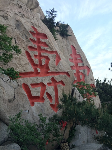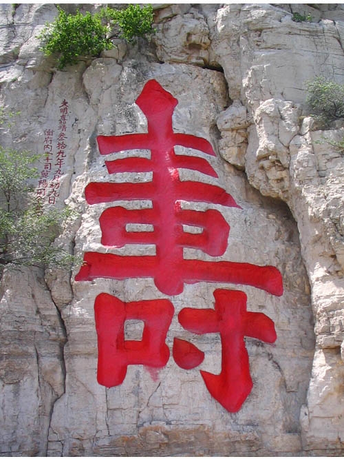云门山上最有影响力的景点莫过于大“寿“字了,这是明代青州一管家献给王爷的特别寿礼,能从置望到山上的这个寿字。瞧这管家多会琢磨领导的心理,经典的精神贿赂,这马屁拍的,文绉绉的多么得体。 据说“寿比南山”一词也渊于此。“寿”字高7.5米,宽3.7米,仅寿下“寸”字就高2.3米,所以当地流传着“寿比南山、人无寸高。另一奇观云门洞,传说是秦始皇东巡时为压齐地王气而凿。洞高4米,宽6米,深10余米,在洞内穿行气流旋身,拔凉拔凉的,神清气爽,大王之雄风也。峰顶北观,青州市区一览无余。 大美青州,物华天宝,人杰地灵,其历史文化沉淀下来的名胜古迹甚多,