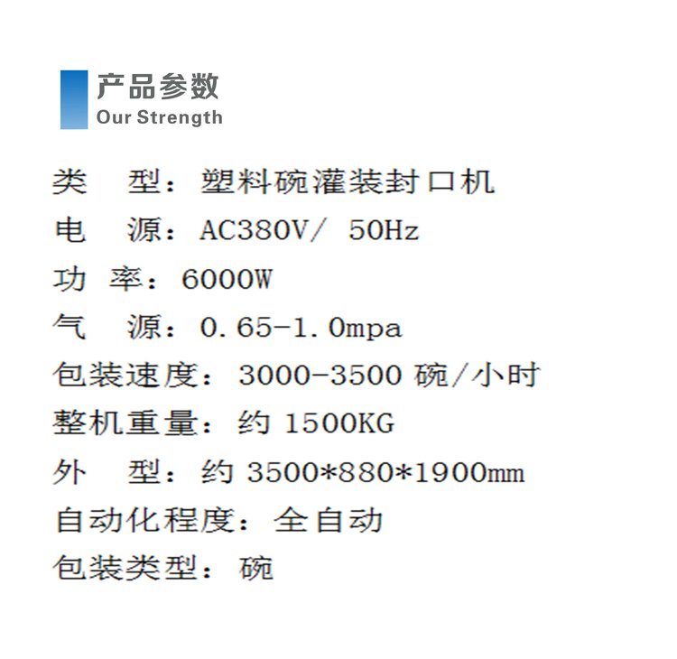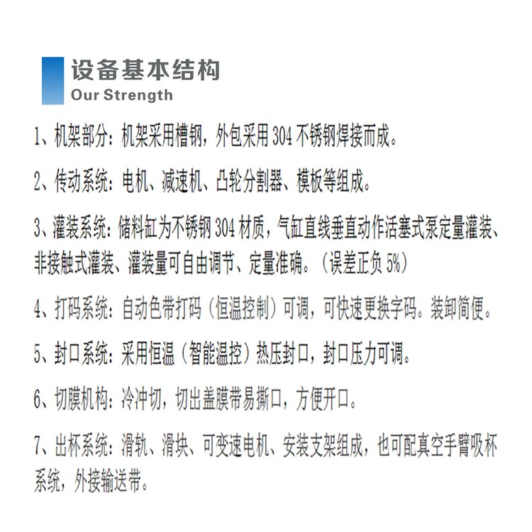 功能 | 落碗灌装打码校膜真空封口切膜出碗 | ||