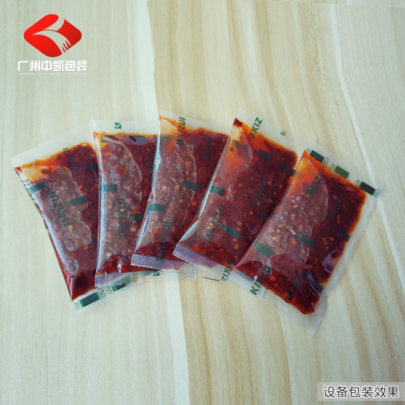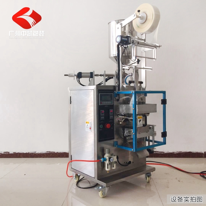 广州中凯包装酱料包装机,袋装液体膏体包装机适用于食品、化工、农业产品中液体物料的全自动包装,如:植物营养液、洗发水、沐浴液体、酒水、面霜、调味油、黄油、果酱、番茄酱、蜂蜜等液体/膏体物料。