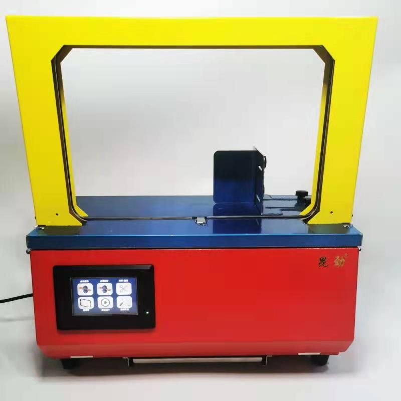 本机广泛适用于制药、食品、印刷、服装、旅游、金融、IT、日用化工等多种行业。可对较大纸盒进行联体捆包,也可对多片、多条、多根、多盒、的较小硬、软质制品实施成组捆扎。 捆包形式多样化:它可分单捆、双捆、三捆、井字形和软质物品的异形捆包。