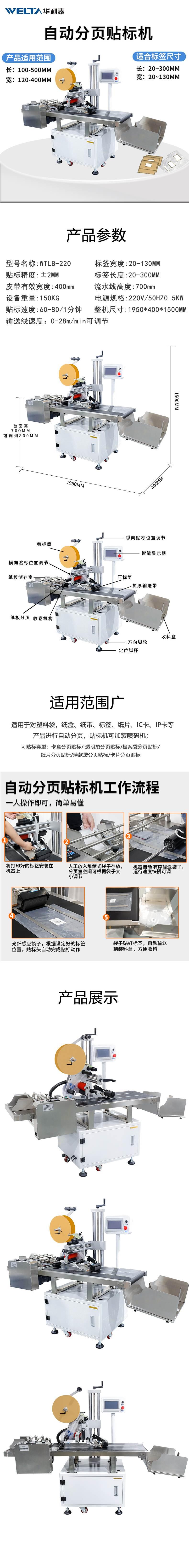 全自动纸片彩盒包装袋子贴标签不干胶宽度分页贴标机WTLB-220B