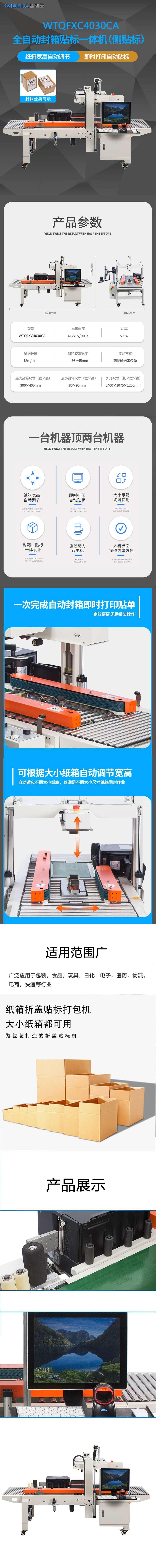 全自动包装机 即时打印贴单机 宽高自动调节 封箱贴单一体机WTQFXC4030CA