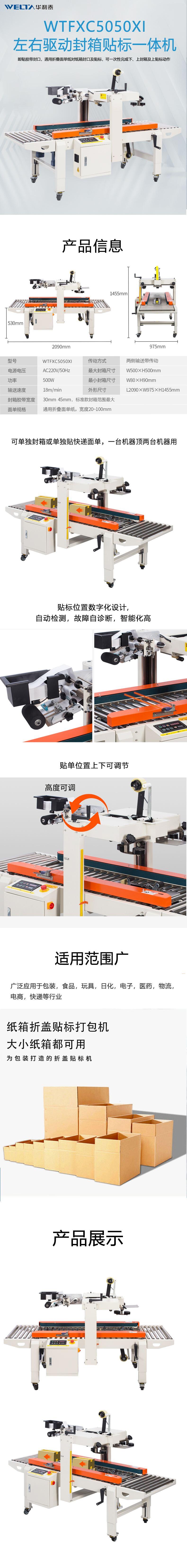 封箱贴单一体机 纸箱贴标机全自动快递电商打包胶带封箱机WTFXC5050XI