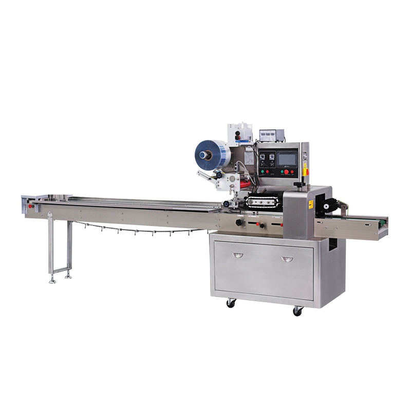 枕式包装机机械用途:本包装机是针对固型物的包装而设计的,用于包装产品,使产品增长其保质期,增加产品美观度的一种机械。适合于包装各类固态有规则的物体,如食品类的饼干、面包、月饼、糖果等,以及日用品、工业零件等,对于散状物或个体分离的物体,则须将被包物先置于盒内,或将之绑束成一体,使之形成一个整体后,才可在本机上包装,至于其它非固态的被包物亦须准此要领。