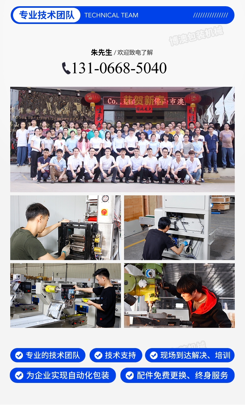 佛山市博澳包装机械有限公司是枕式包装机、伺服包装机、食品包装机、五金包装机、口罩包装机、凝胶管包装机、说明书包装机、数据线包装机、钢管包装机、糕点包装机等产品专业生产加工的公司,拥有完整、科学的质量管理体系。佛山市博澳包装机械有限公司的诚信、实力和产品质量获得业界的认可。欢迎各界朋友莅临参观、指导和业务洽谈。博澳在成长中腾飞稳健发展,创造伺服包装机产业发展史上的传奇,公司奉行“以质量求生存,以服务求发展”的经营理念,科学进步为导向,科技人才为根本,开创了各行业包装行业的全新格局