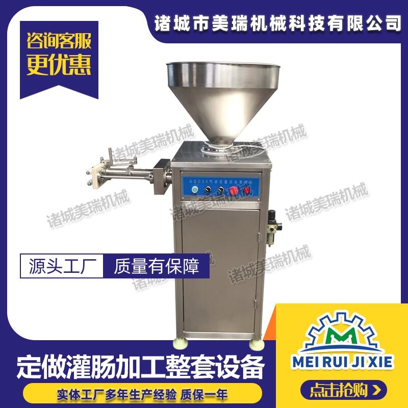 淀粉肠灌肠机 玉米肠灌肠机 灌肠打卡一体机多少钱通常肠衣有分为塑料肠衣香肠生产线、蛋白肠衣以及生物肠的的衣等等的,如果香肠生产线来加液压的方式的灌肠机不能进行定量也不能进工处理了,需要人工将肠衣套入到灌肠杆上,然后通过启动机器爱使用加工。机器就可以起到一个自行灌制加工的一个效果的。