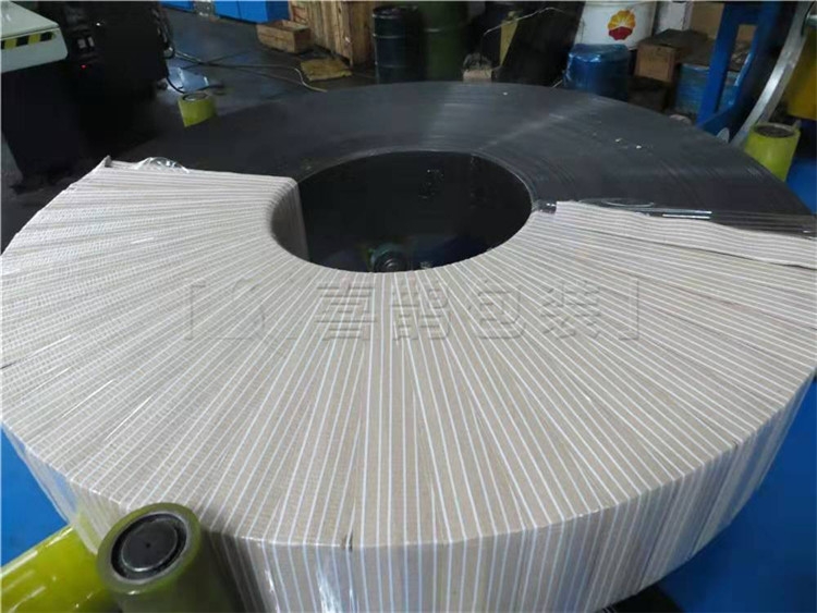 10.弹簧钢带缠绕包装机将包装材料头自动缠绕在料卷上,打包结束后自动切断材料