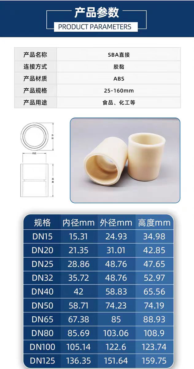 ABS直接直通管子管材配件管道给水供水排水管弯头法兰闷盖三通