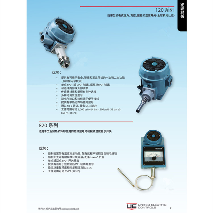 H100系列United Electric压力开关H100-191型 美国UE开关