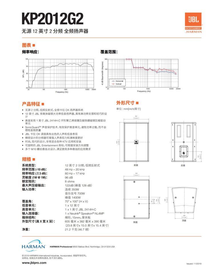 JBL KP2012 G2产品规格书